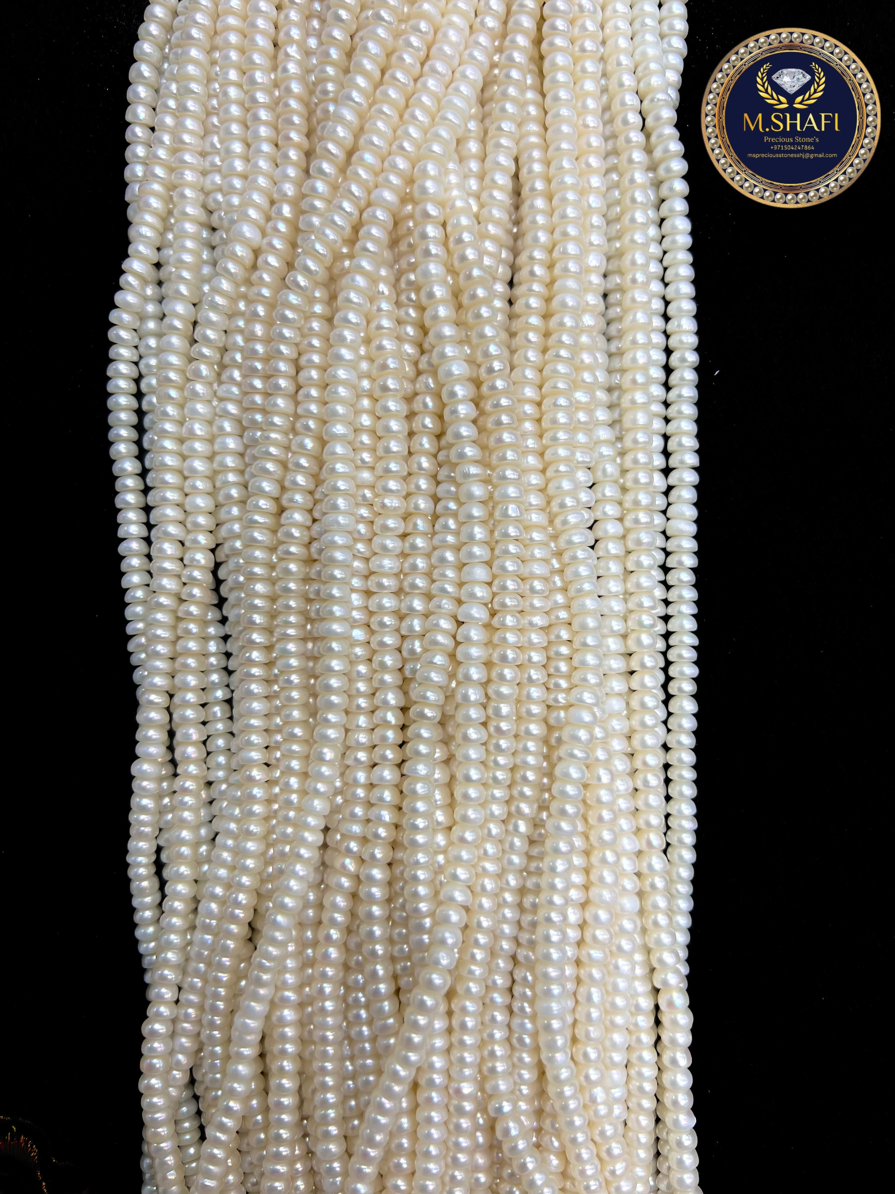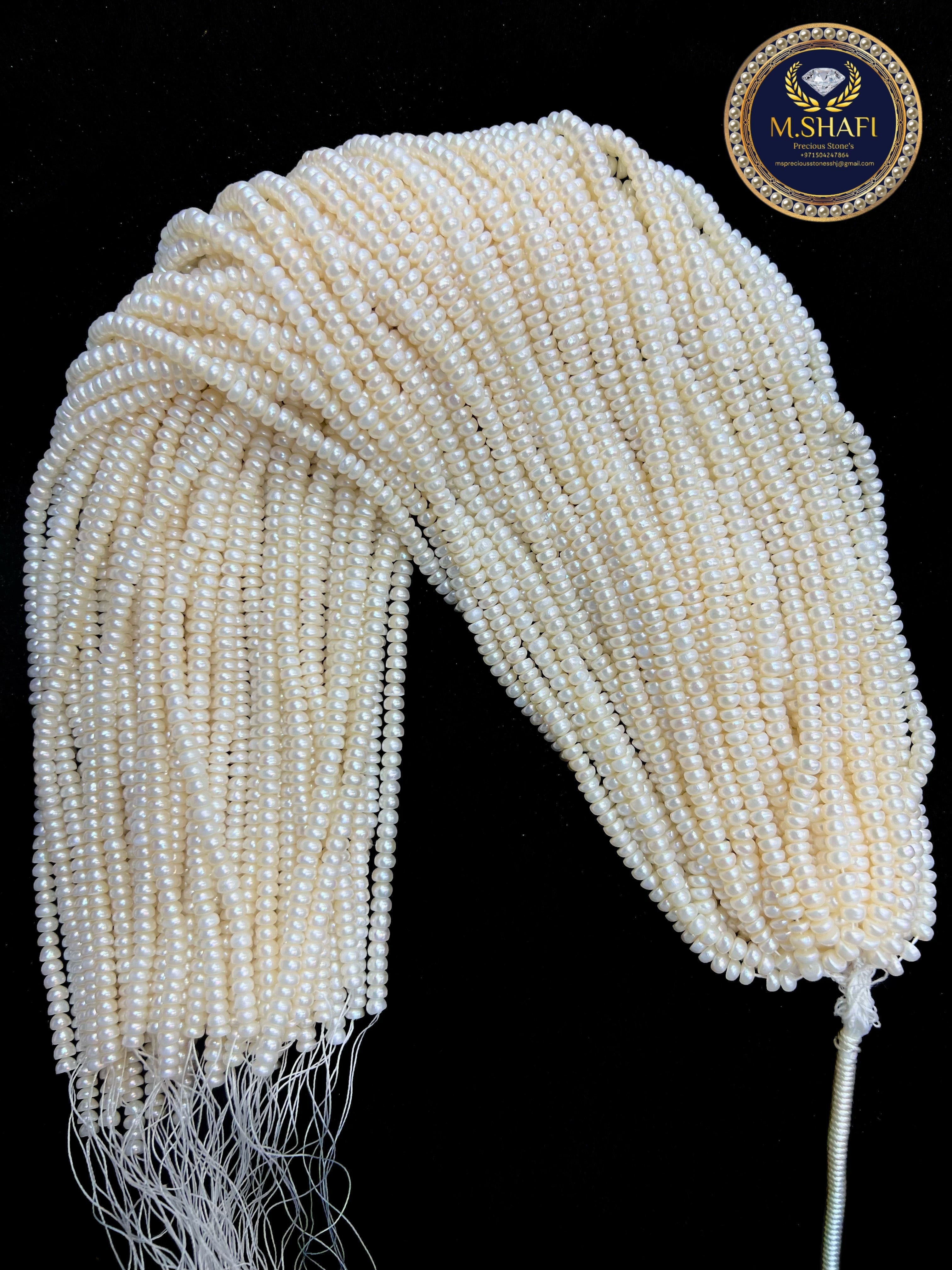 Add timeless elegance to your jewelry creations with these 4mm–5mm Button Shape Freshwater Pearls in a soft, natural cream color. Each 16-inch line is filled with carefully selected pearls featuring a smooth surface and high natural luster — ideal for professional and DIY jewelry makers alike.