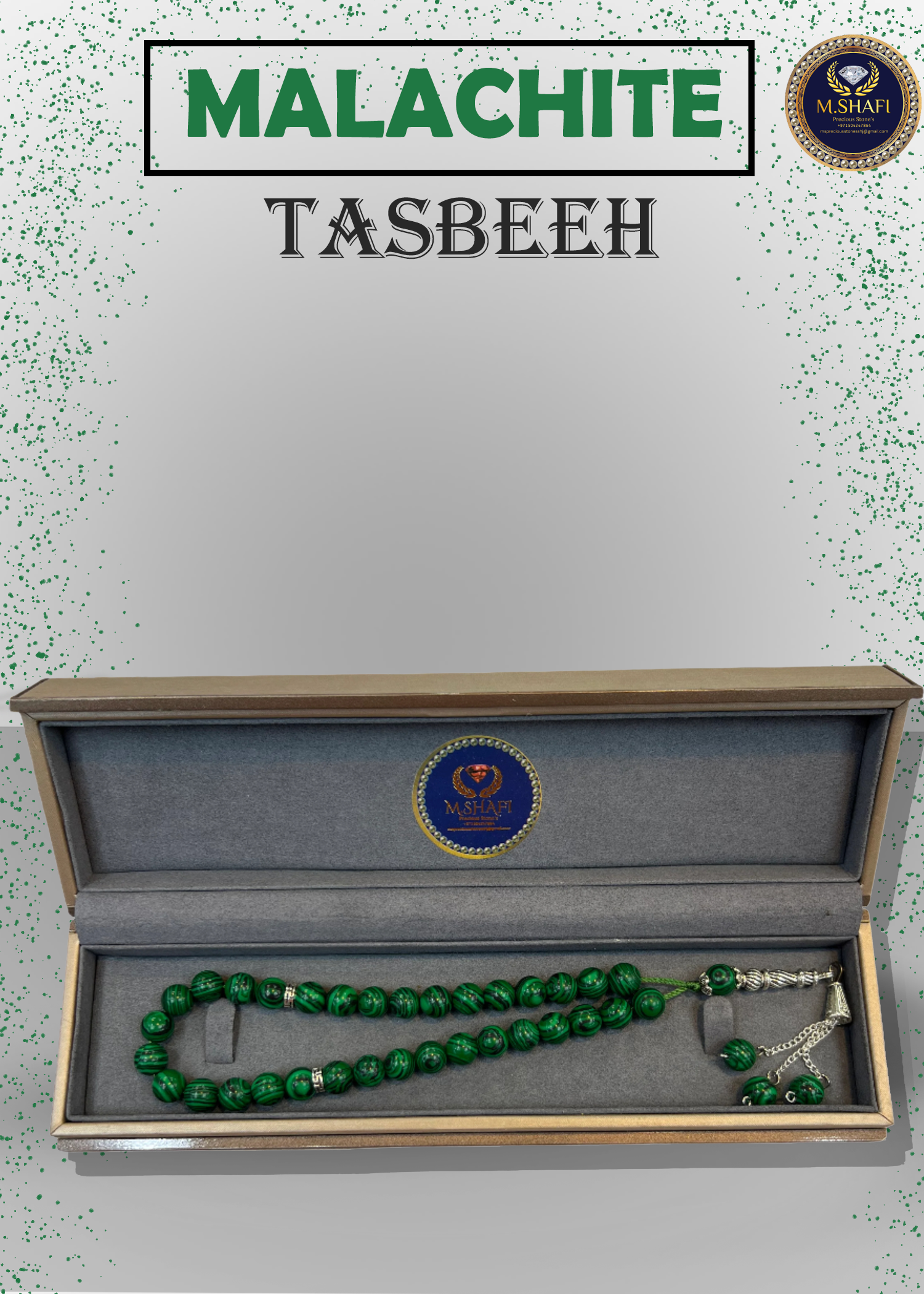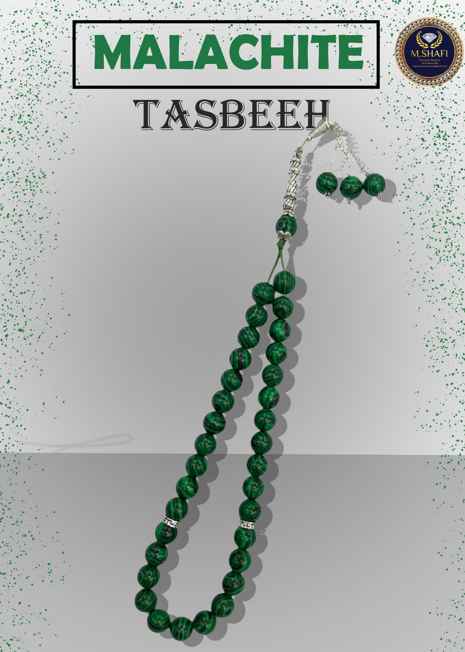 This 33-bead misbaha is made with malachite-style beads that have a beautiful green color and natural-looking patterns. It's smooth to the touch and comfortable to use, perfect for daily prayers and reflection.