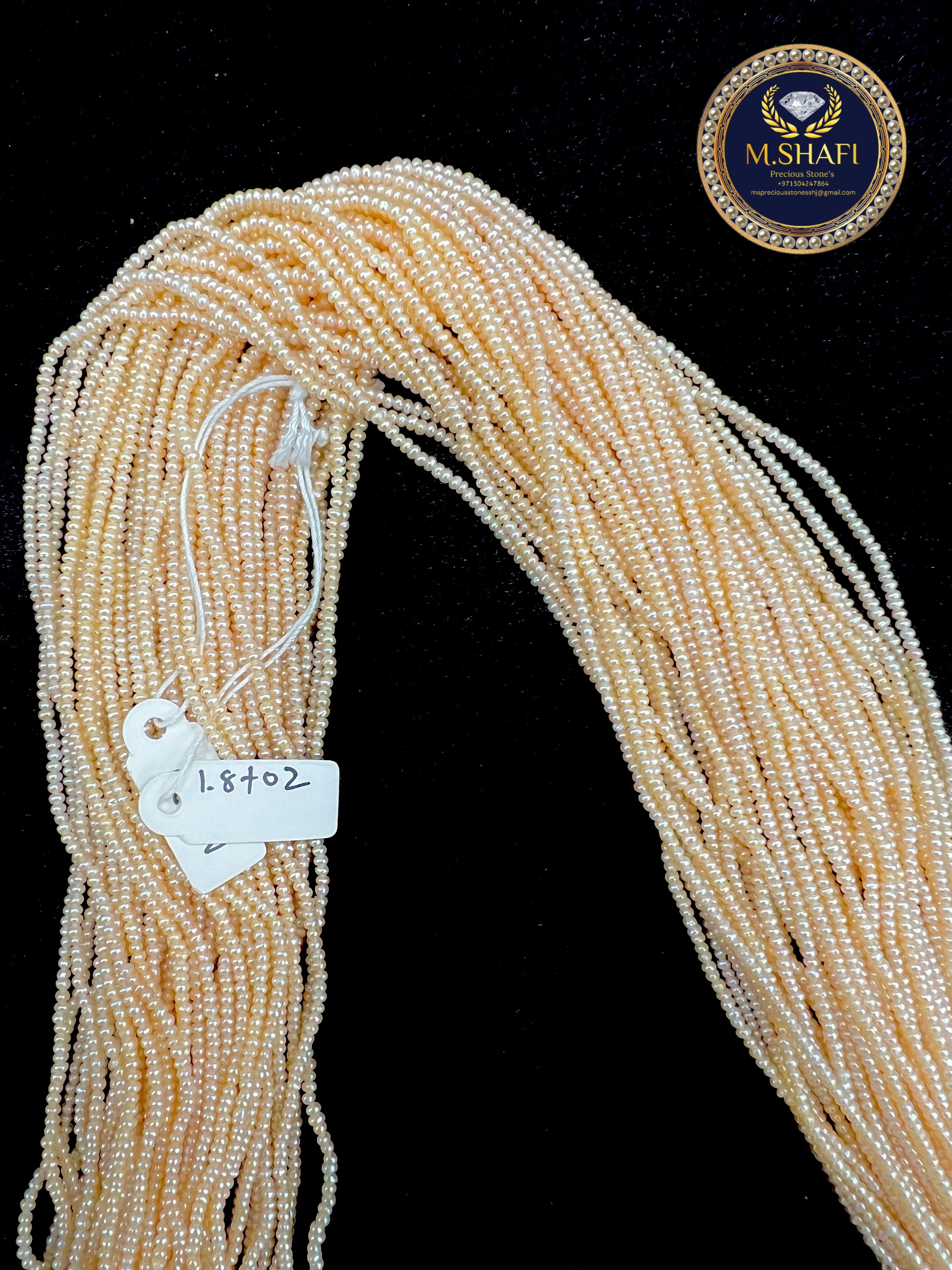 These 2 to 2.5mm Peach Round Freshwater Pearls bring delicate beauty and natural elegance to your most detailed jewelry designs. Their soft peach tone glows with warmth, making them perfect for creating feminine, minimalist, and fine handcrafted pieces.