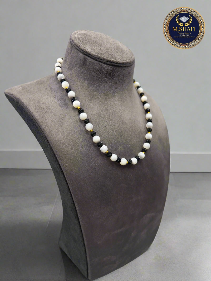 Discover beauty and quality with our Mother of Pearl and Black Beads Necklace – a new design made by our own skilled artisans. Each piece is handmade with care, making it special and unique.