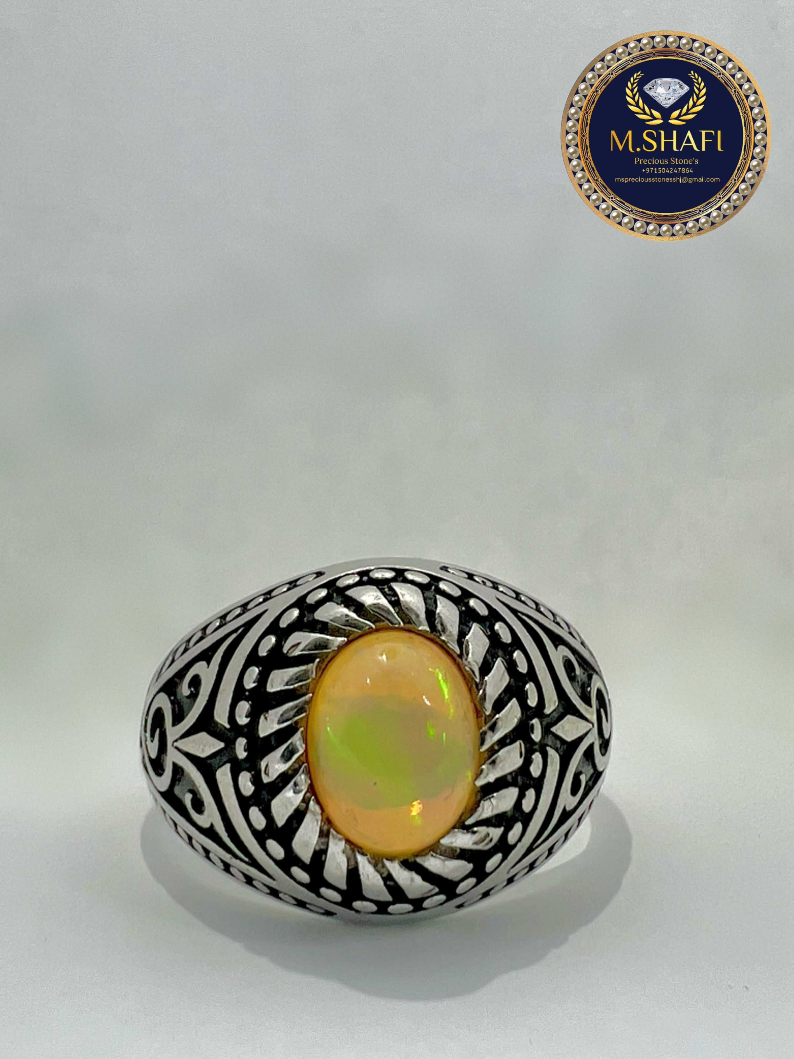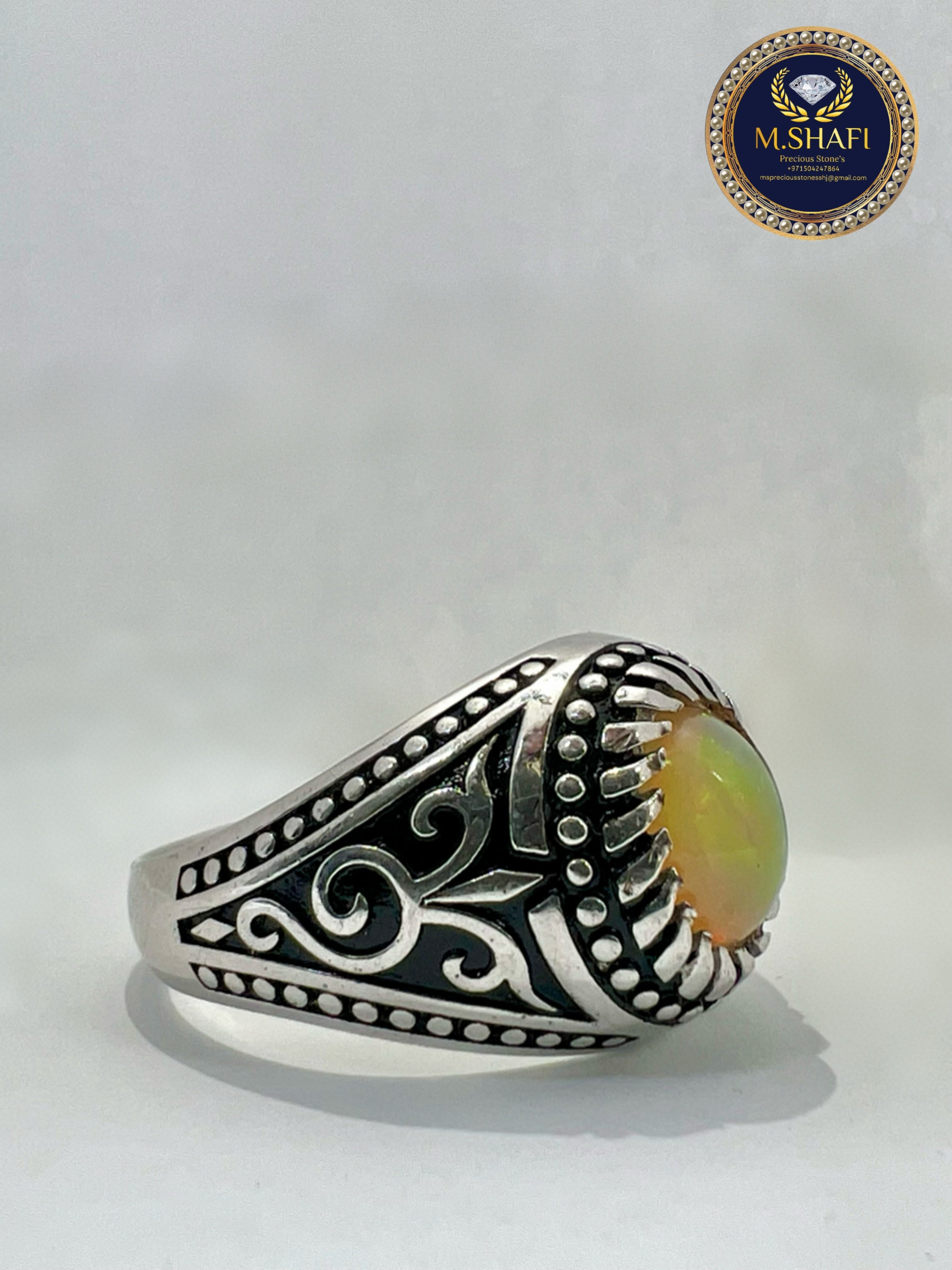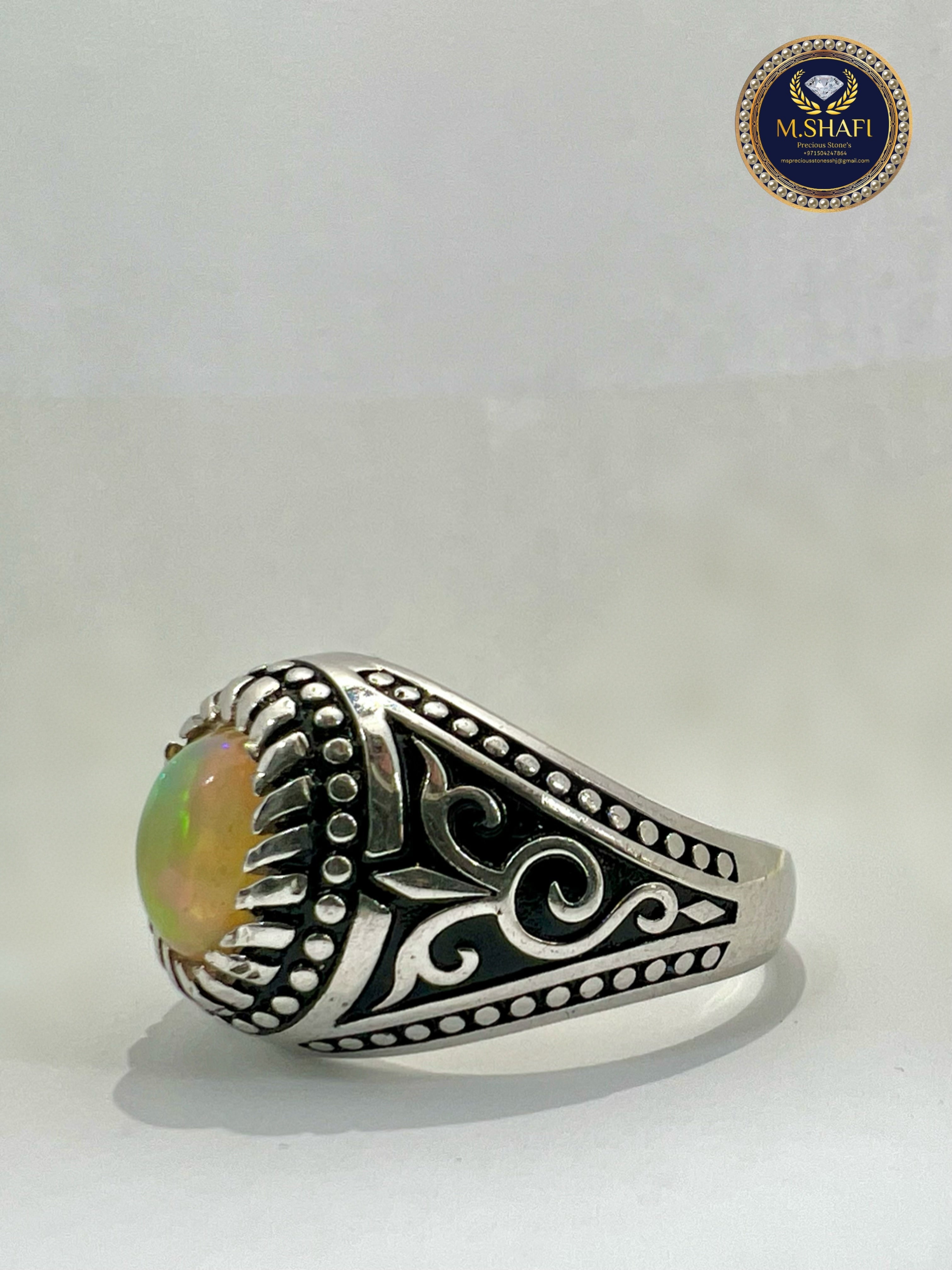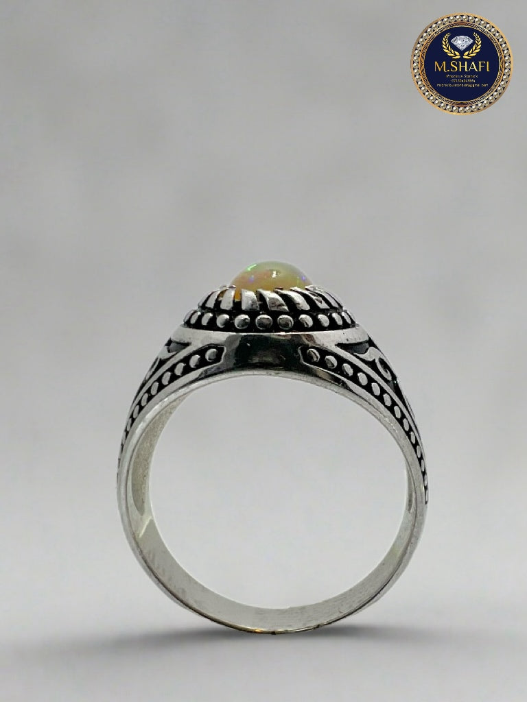 Experience timeless elegance with this Royal Opal Silver Ring, expertly crafted in high-quality sterling silver. Its traditional design reflects classic artistry, making it perfect for those who appreciate heritage and sophistication.