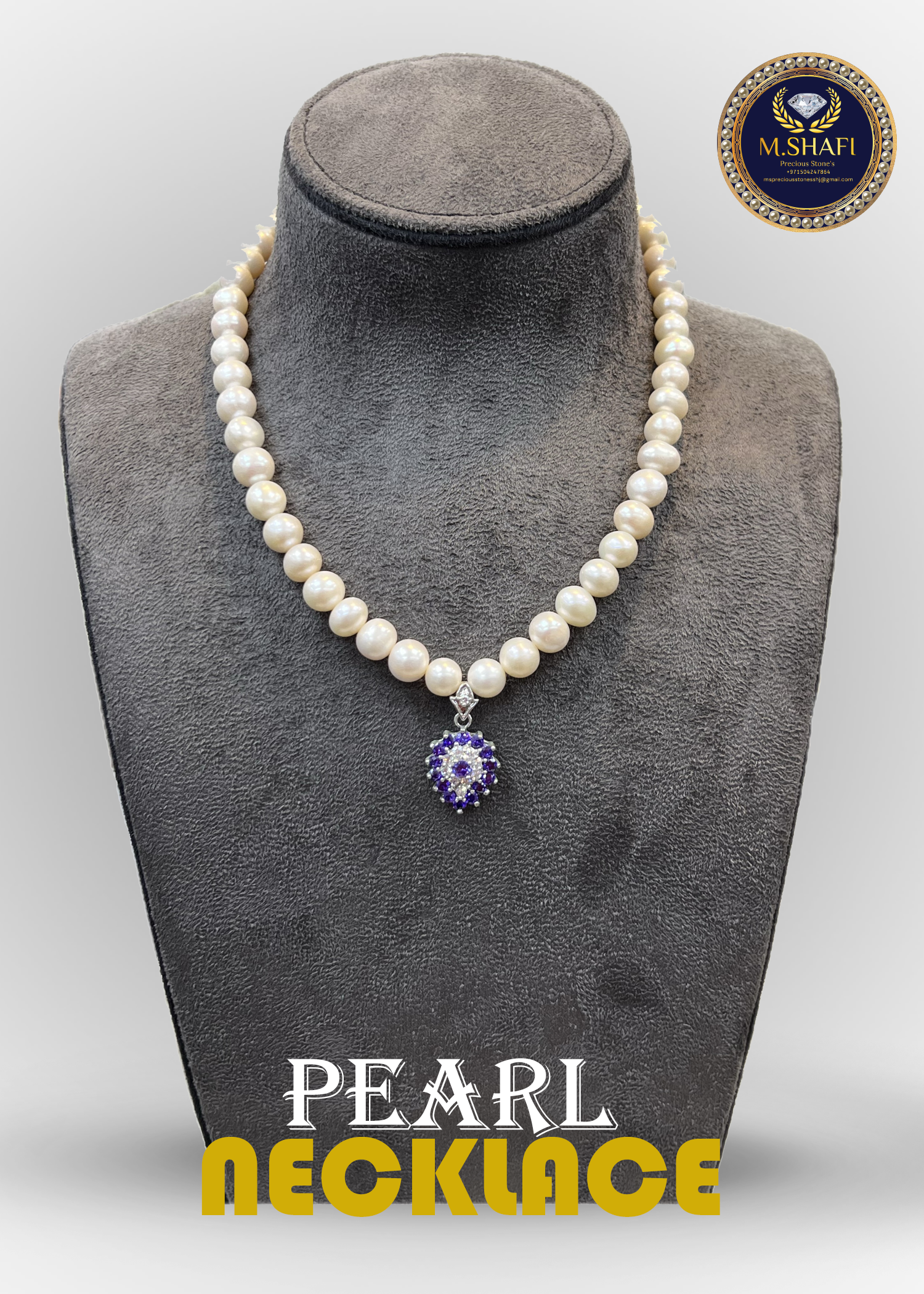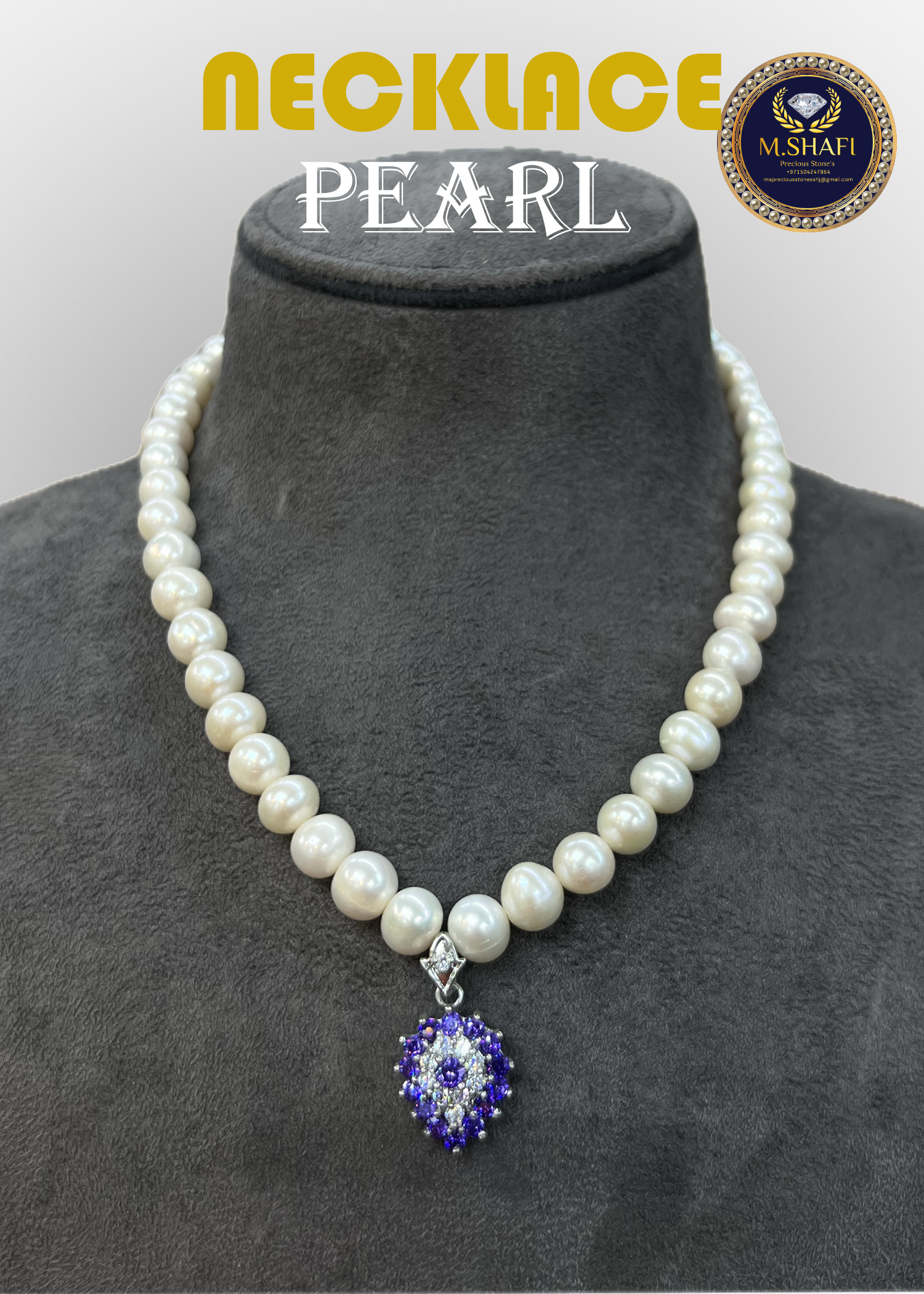 Experience elegance with this luxury pearl necklace, featuring high-quality pearls carefully selected for their luster and smooth finish. The necklace is complemented by a beautifully crafted silver pendant, adding a classic touch of sophistication. Weighing 53 grams, this piece feels substantial and well-made, perfect for special occasions or daily wear. Designed to combine timeless style with durable craftsmanship, it’s a must-have addition to your jewelry collection.