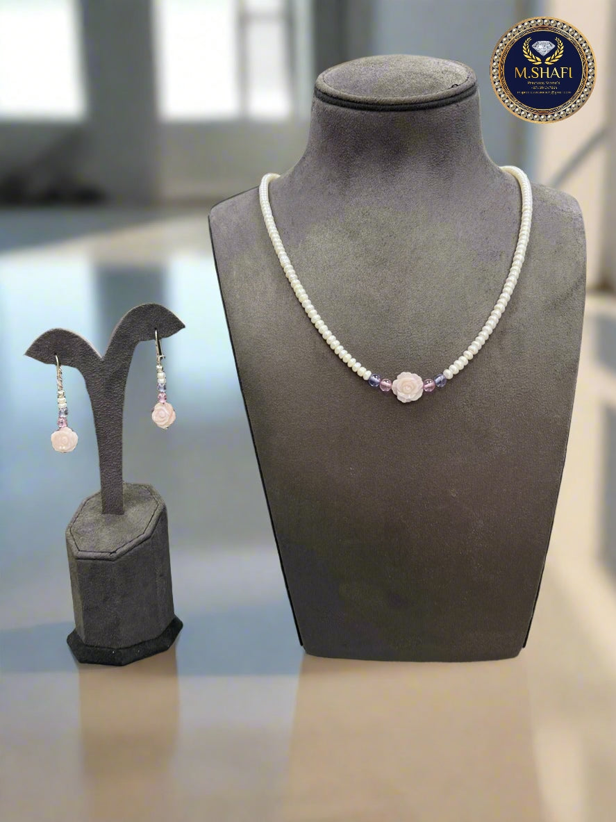 This beautiful set features a real freshwater pearl necklace paired with a handcrafted mother of pearl flower pendant and matching earrings. Each piece is made with high-quality, strong freshwater pearls that shine naturally and feel smooth to the touch. The mother of pearl pendant and earrings are carefully handcrafted, giving them a unique, elegant look. The design is customizable, so you can create a perfect set to match your style or occasion. Durable and timeless, this set is ideal for everyday wear or special events.