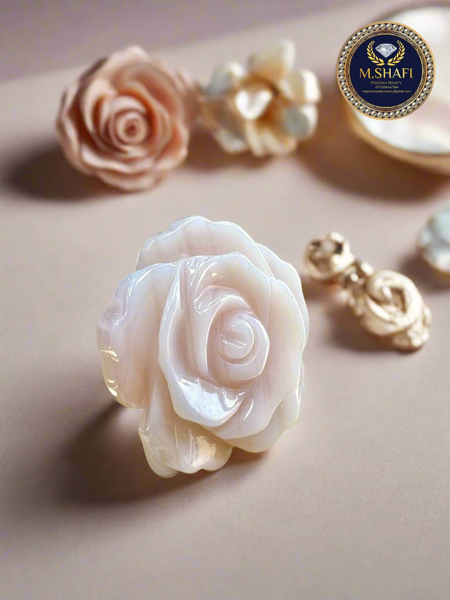 This elegant pink mother of pearl flower is beautifully carved on both sides, offering a full 3D floral design that looks stunning from every angle. Its soft pink color and natural iridescent shine add a gentle, feminine charm to any jewelry piece. Ideal for use in rings, pendants, earrings, or bracelets, this flower works perfectly with both gold and silver settings. The smooth finish and fine detailing make it suitable for luxury, bridal, or handcrafted jewelry. Lightweight and easy to work with, it's a favorite among designers creating custom, elegant pieces.