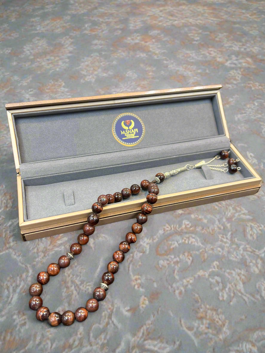 Each bead is smooth, durable, and comfortable to use during dhikr. Tiger eye is often associated with clarity, confidence, and protection, making this tasbih both a spiritual tool and a meaningful keepsake.