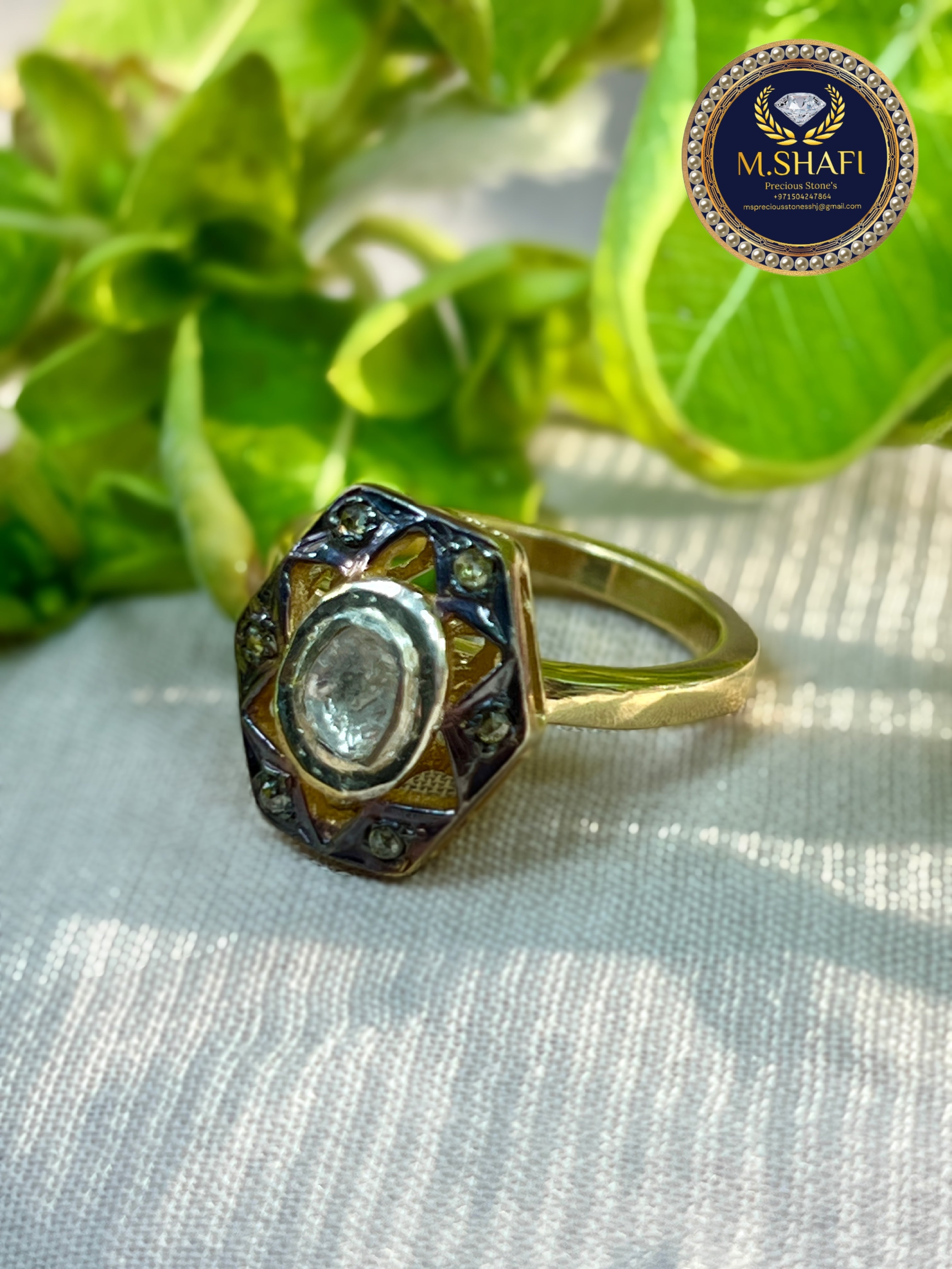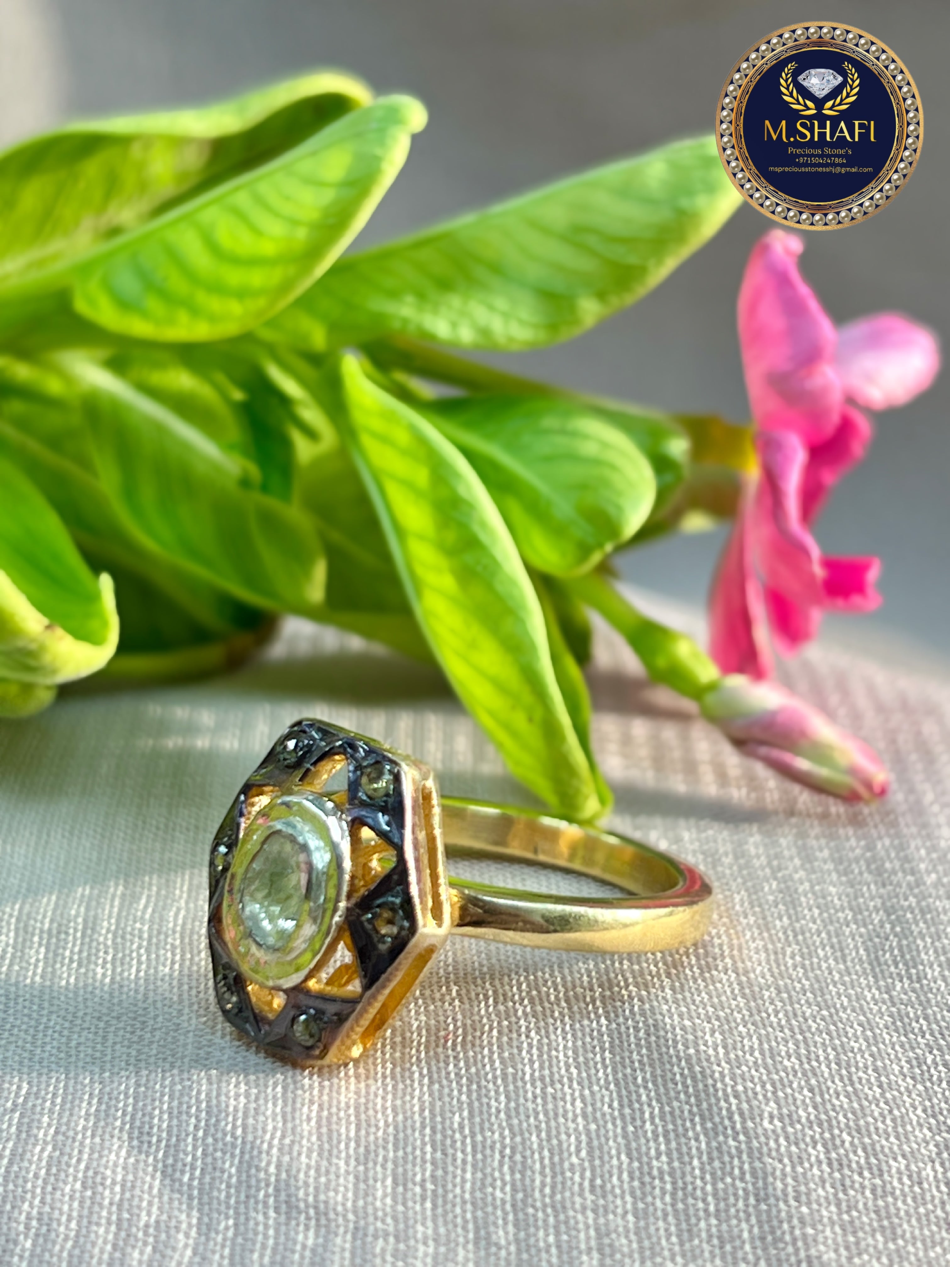 Add timeless elegance to your collection with this Natural Polki Diamond Ring, beautifully set in 925 Sterling Silver. Featuring an antique octagonal design, this ring blends traditional craftsmanship with modern sophistication, making it a perfect accessory for those who appreciate luxury with a touch of heritage.