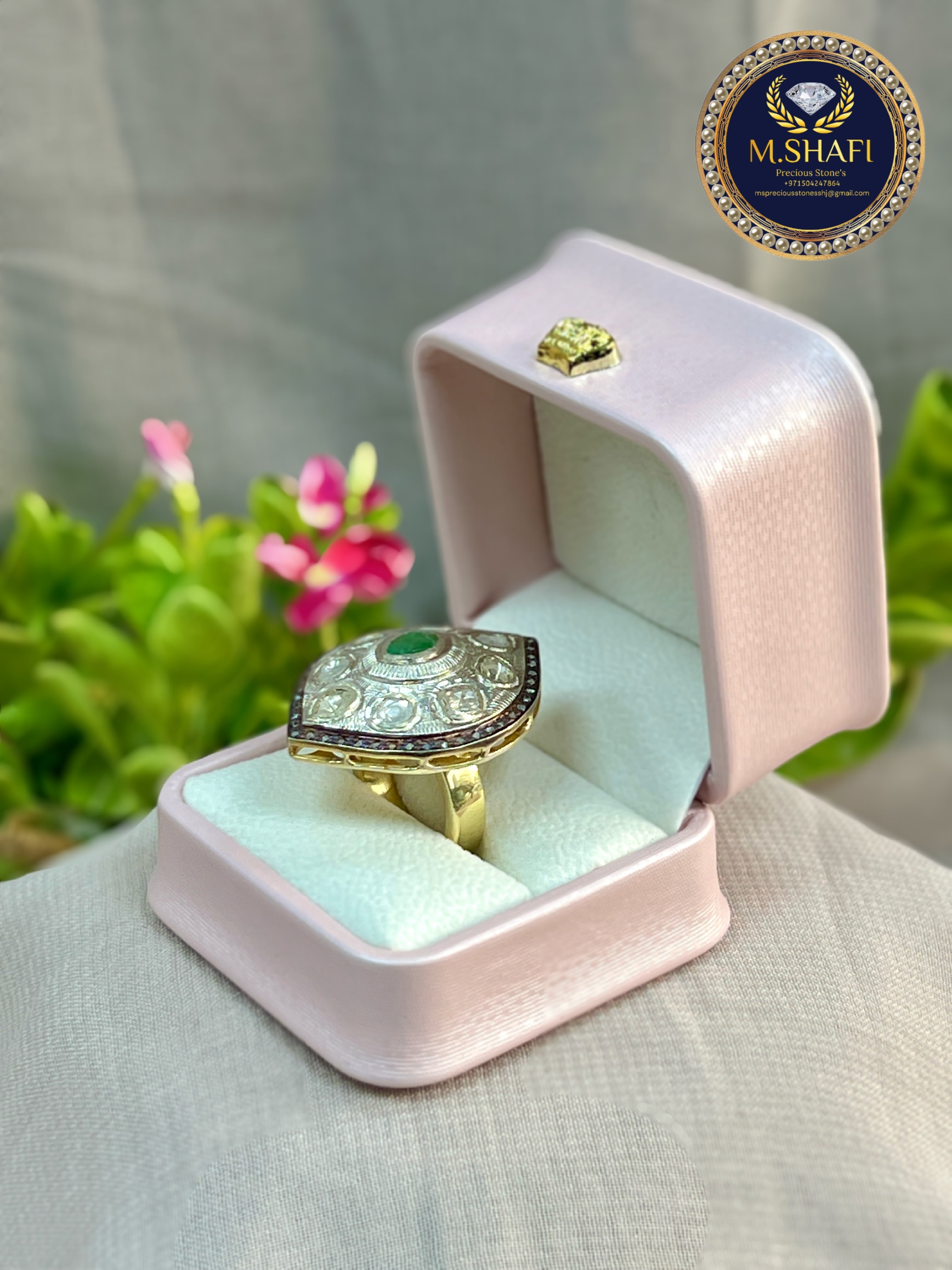 Premium Stones in One Ring: Natural emerald and authentic Polki diamonds in a single design.