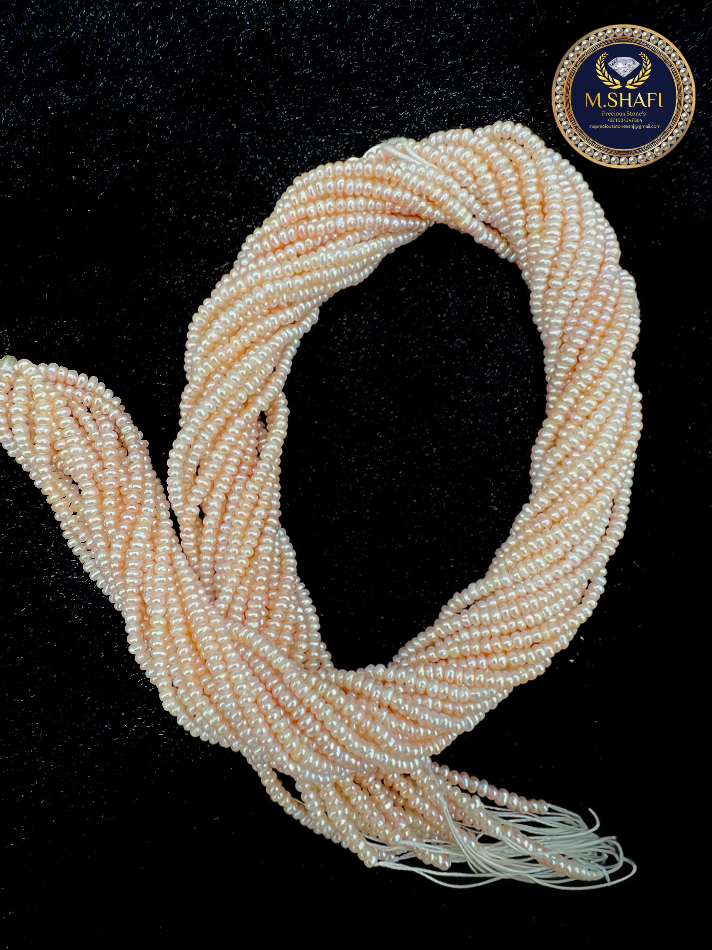 These 1.8 to 2mm peach button shape freshwater pearls are a jewelry maker’s dream for soft, graceful designs in a refined, tiny size.