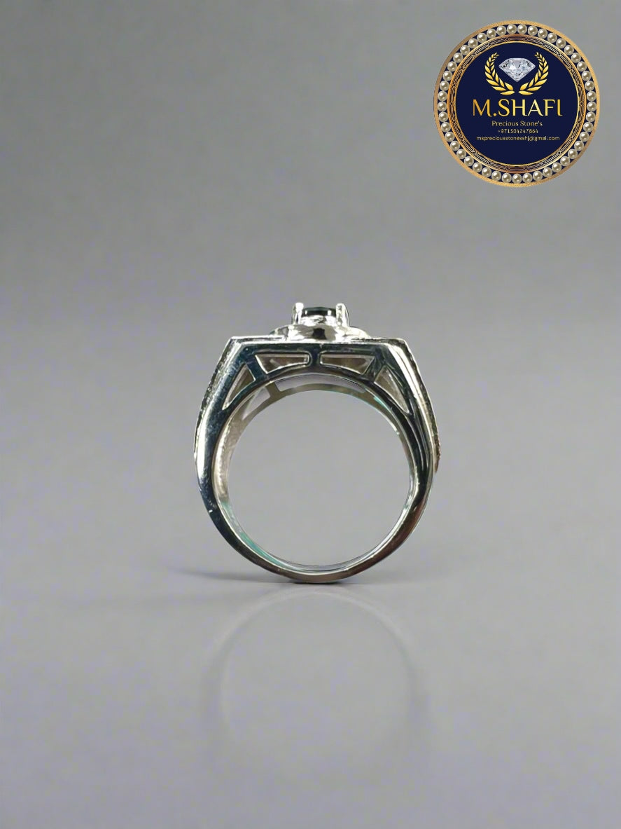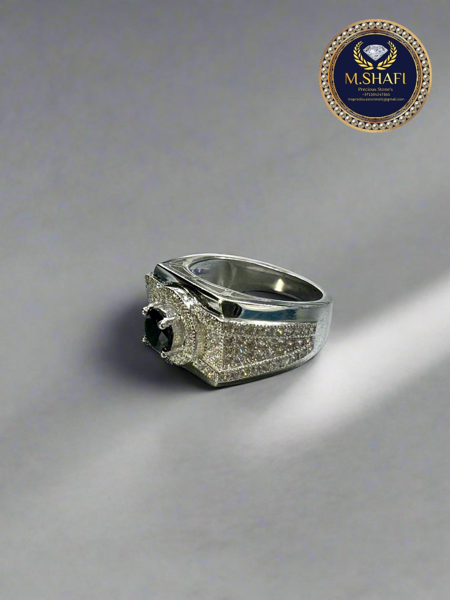 Experience bold elegance with this new design silver ring, featuring a polished black zircon center stone paired with two brilliant white zircon accents on each side. Inspired by classic watch-style designs, this ring combines modern style with traditional masculinity.