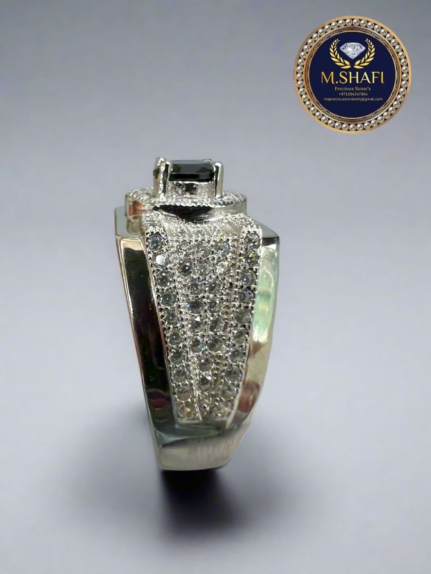 Crafted from high-quality silver, this piece offers a solid, premium feel with detailed side engravings that elevate its uniqueness. The black zircon adds a deep, eye-catching contrast, while the white zircon stones enhance the sparkle and luxury feel.