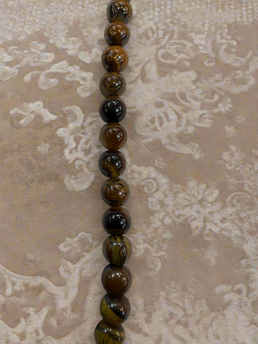 This beautifully crafted tasbih features 100 polished tiger eye stone beads, known for their warm golden-brown tones and natural, light-reflecting shimmer. Each bead is smooth and carefully selected to highlight the unique patterns of the stone.