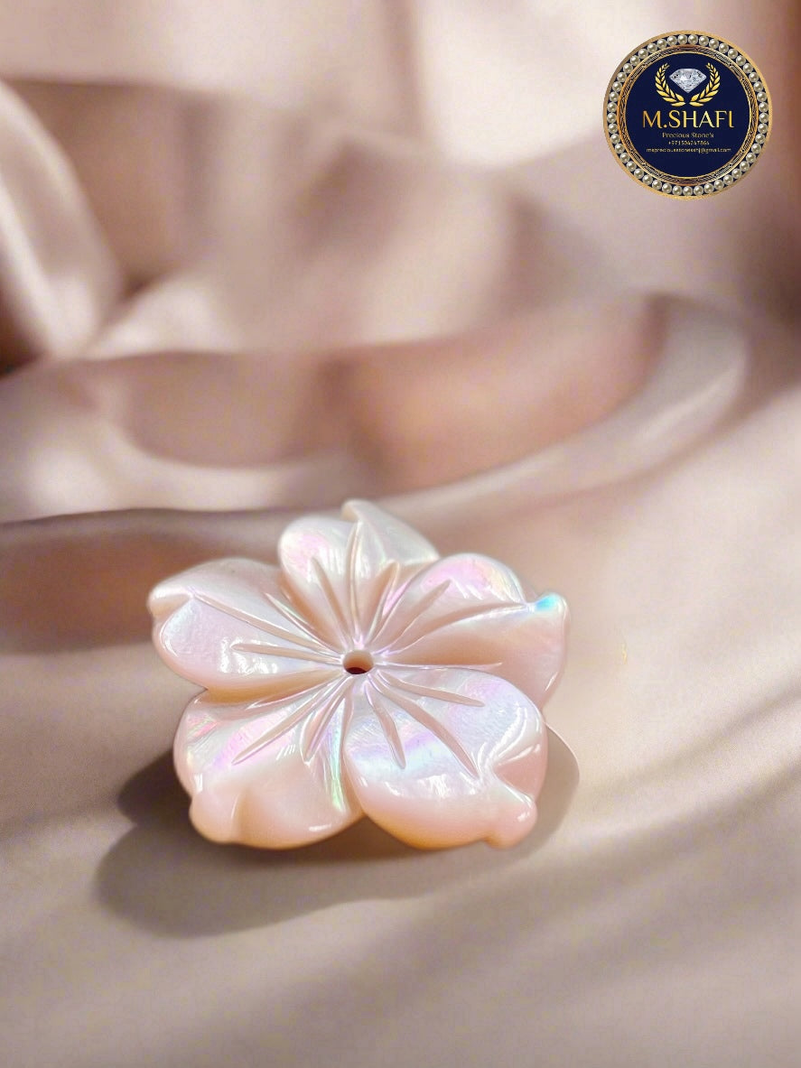 This pink mother of pearl flower features a beautiful new design, finely carved on one side with a smooth flat back for easy setting. Made from real, natural-colored mother of pearl, it showcases a soft, elegant pink tone—free from dyes or artificial coloring. A small middle hole allows for secure and flexible use in different jewelry styles. Perfect for gold and silver settings, this piece is ideal for rings, earrings, pendants, and bracelets. Lightweight, durable, and full of natural shine, it adds a delicate and luxurious touch to handmade, bridal, and custom jewelry collections.